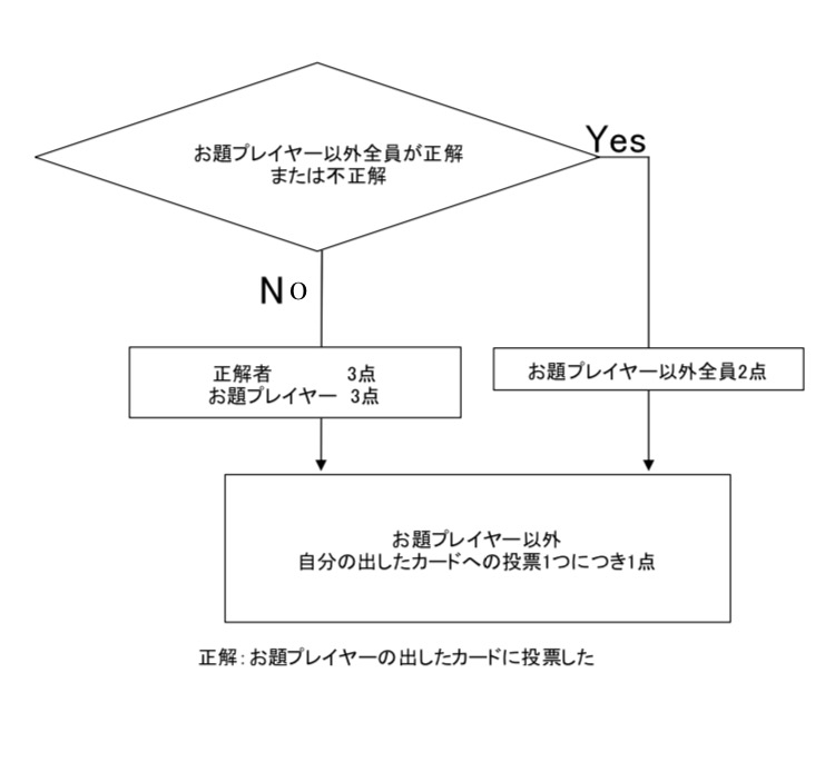 お題プレイヤー以外は自分の出したカードへの投票1つにつき1点