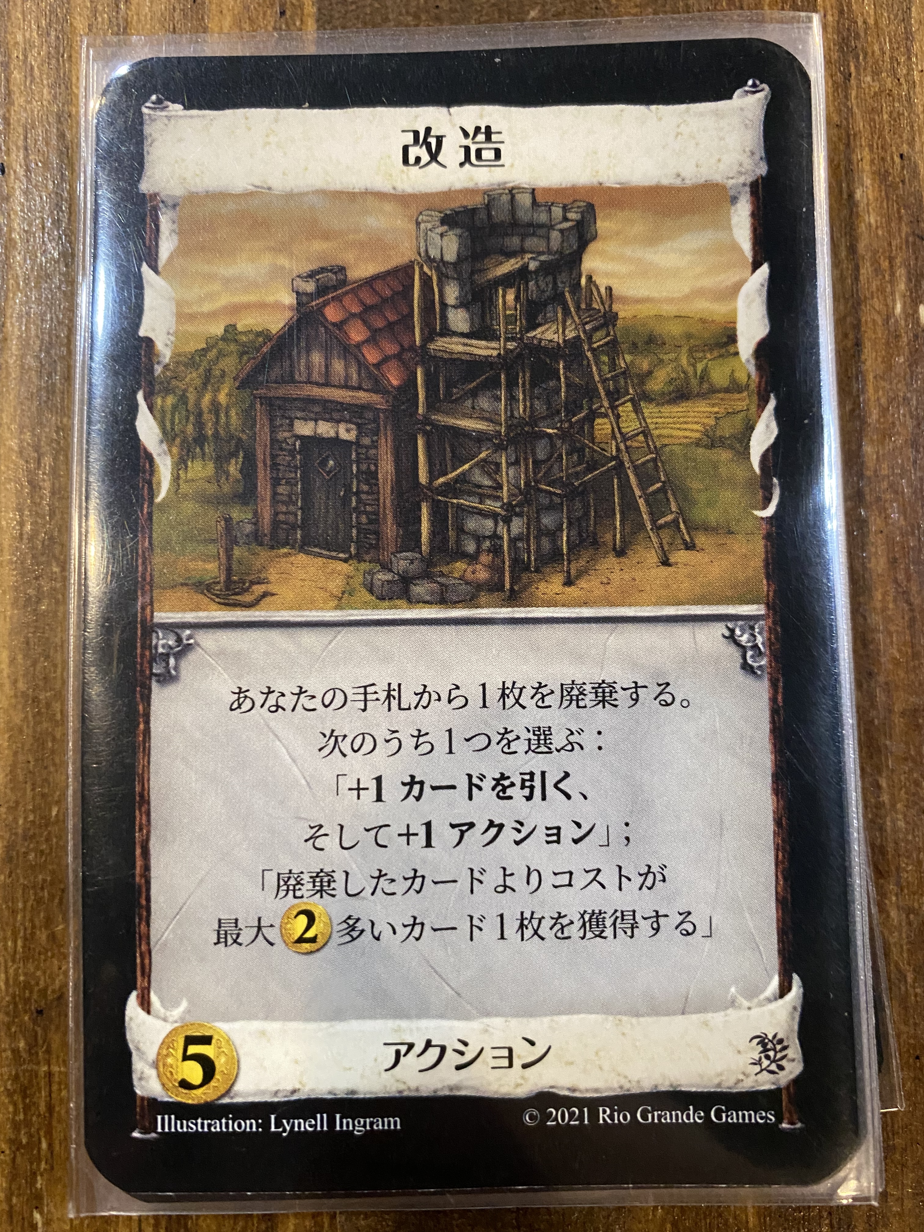 特に改造は、選択肢のそれぞれのテキストは4コスト相当ですが、ドミニオンのゲームシステム(拡大再生産と得点化のタイミングが違う)と相性が良く使用感は楽しいものと感じやすいでしょう。