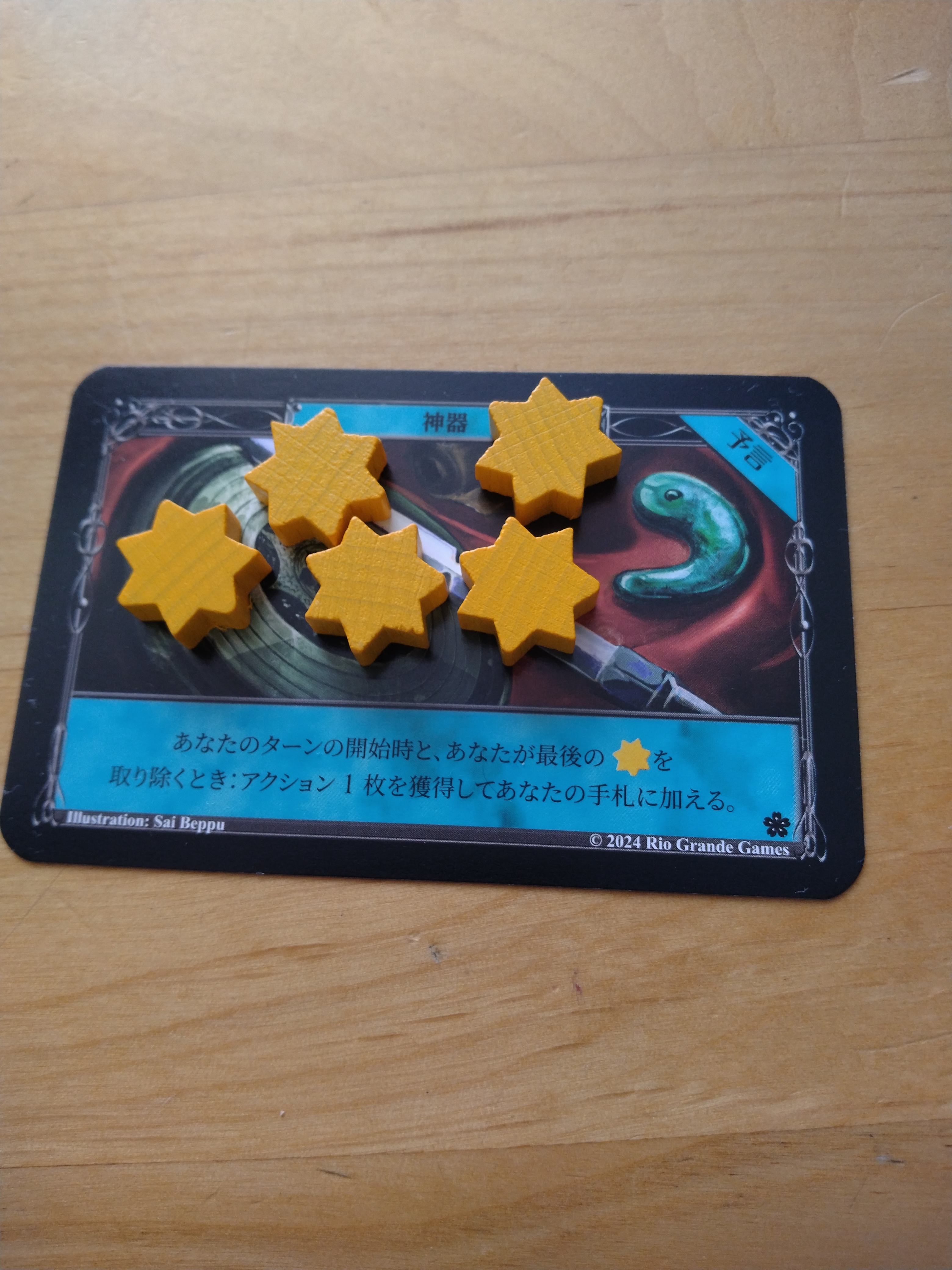 ①を発動するために、必要なカードです。カードにトークンが記されています。予言カードからトークンを全て取り除いた後でも、使用することができます。