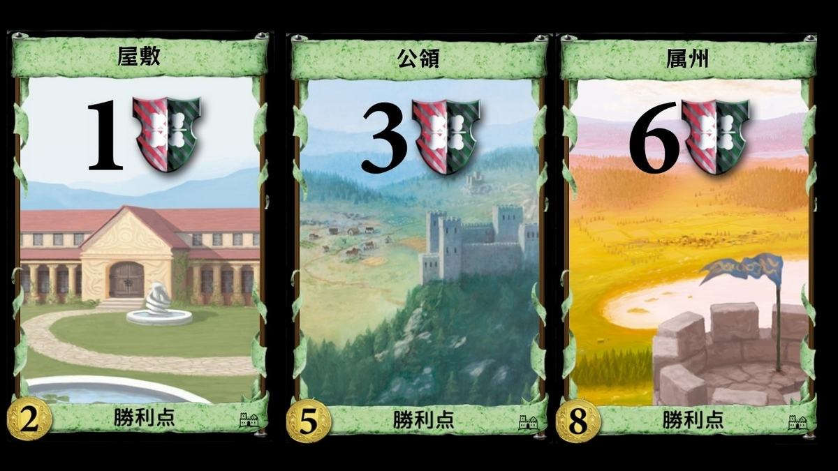 2.点数カード 屋敷、公領、属州、呪いの4種類がある