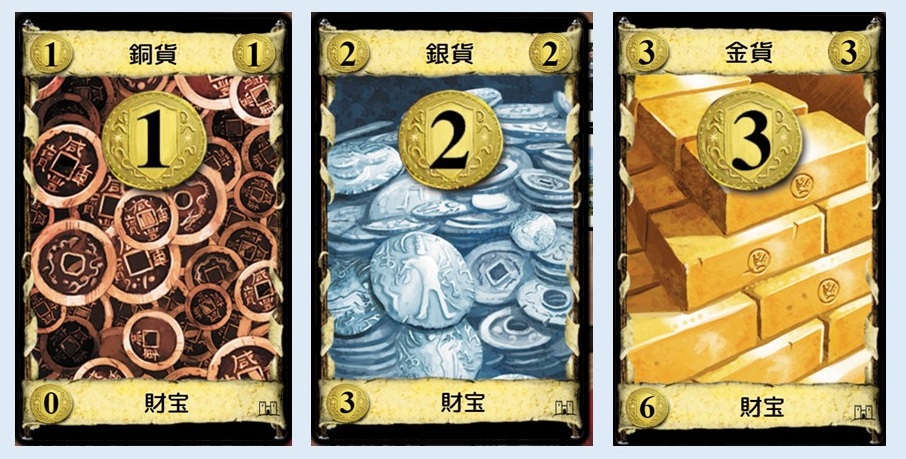1.財宝カード 銅貨、銀貨、金貨の3種類がある