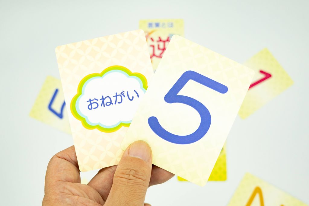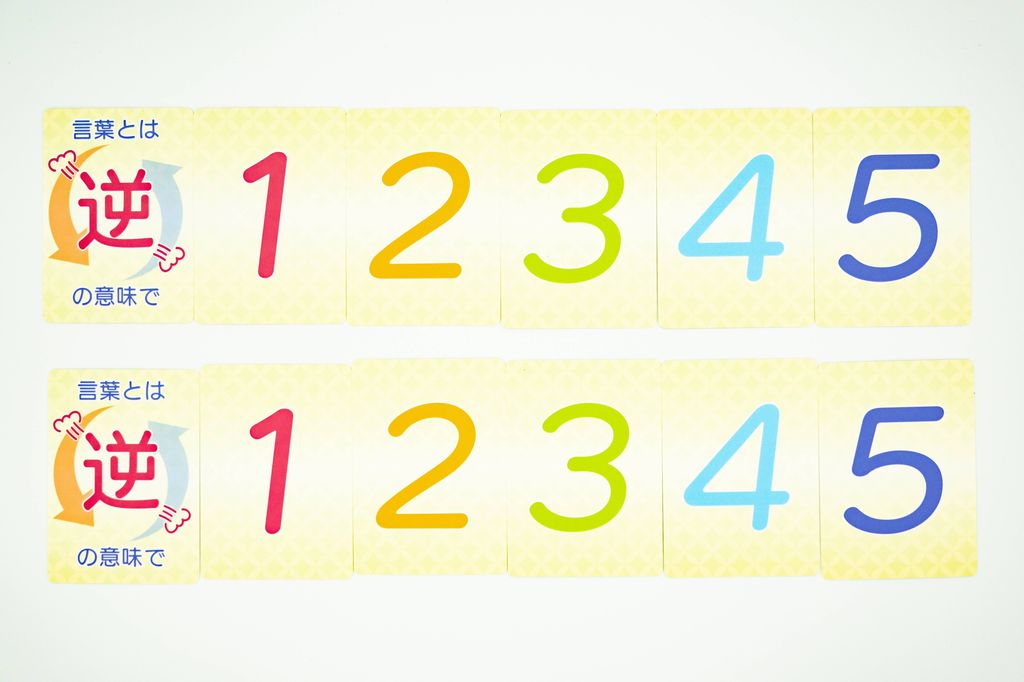 ◆写真のように「逆」「1」「2」「3」「4」「5」が2枚ずつあるベクトルカードを、各1まいずつになるように2つに分けます。