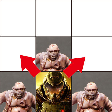 「DOOM」のルールには斜め移動で包囲された敵を突破できない、との記述はなく