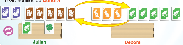 J) その後、ジュリアンは自分の家族である5枚のリスを、デボラの家族である5枚のカエルと交換します。