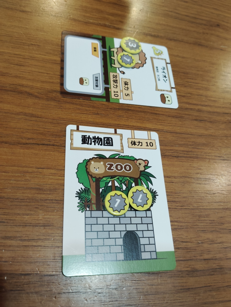 動物園のライフが10なのに、ライオンの攻撃力10で壊れ。