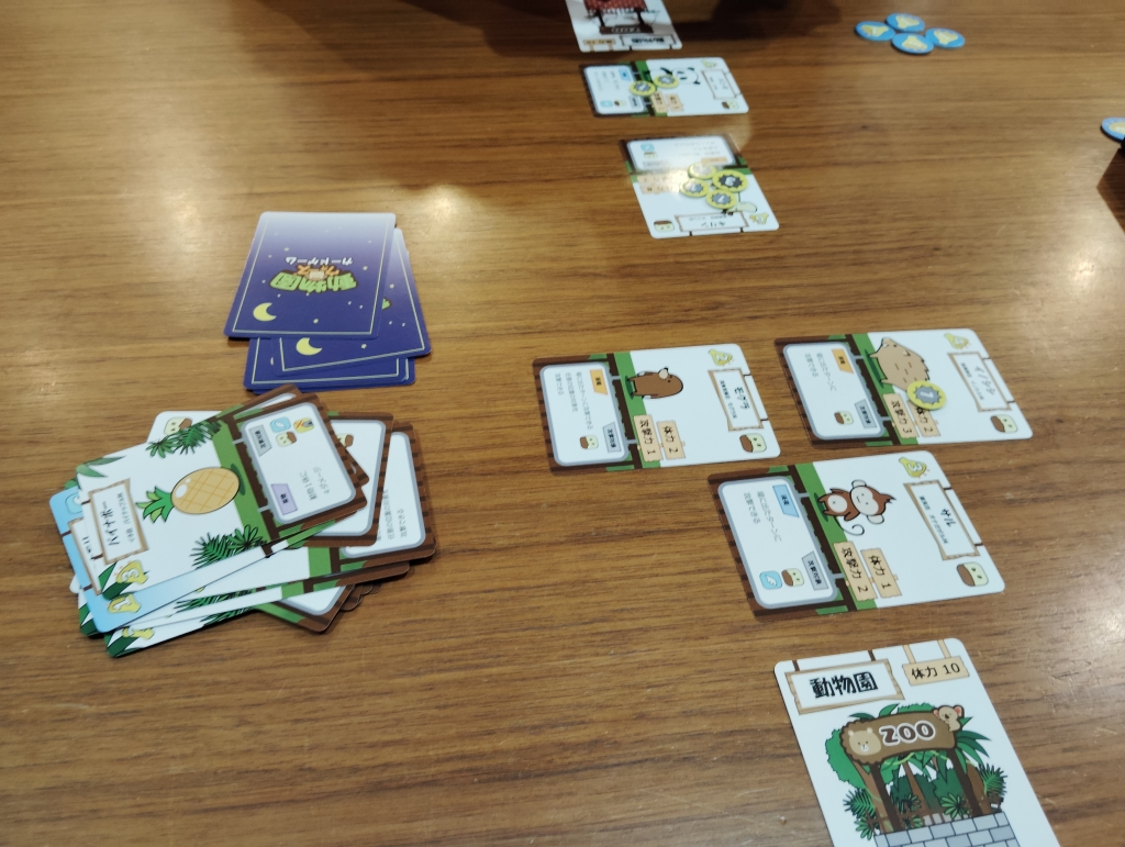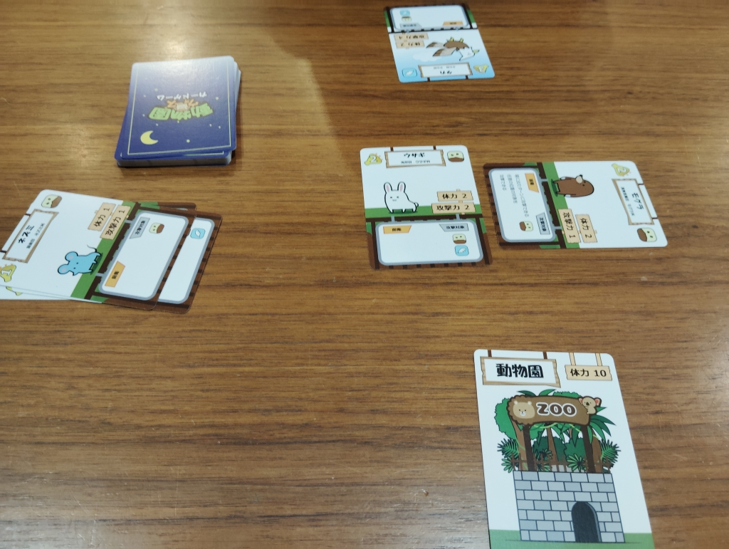 カードゲームをそこそこしてたので、ルールもすんなりやけど召喚酔いをしない迅速(速攻)のじゃないと召喚した次の相手ターンにアタックされて、すぐに退場するから体力の少ない動物は時間稼ぎの壁になりがちでした。