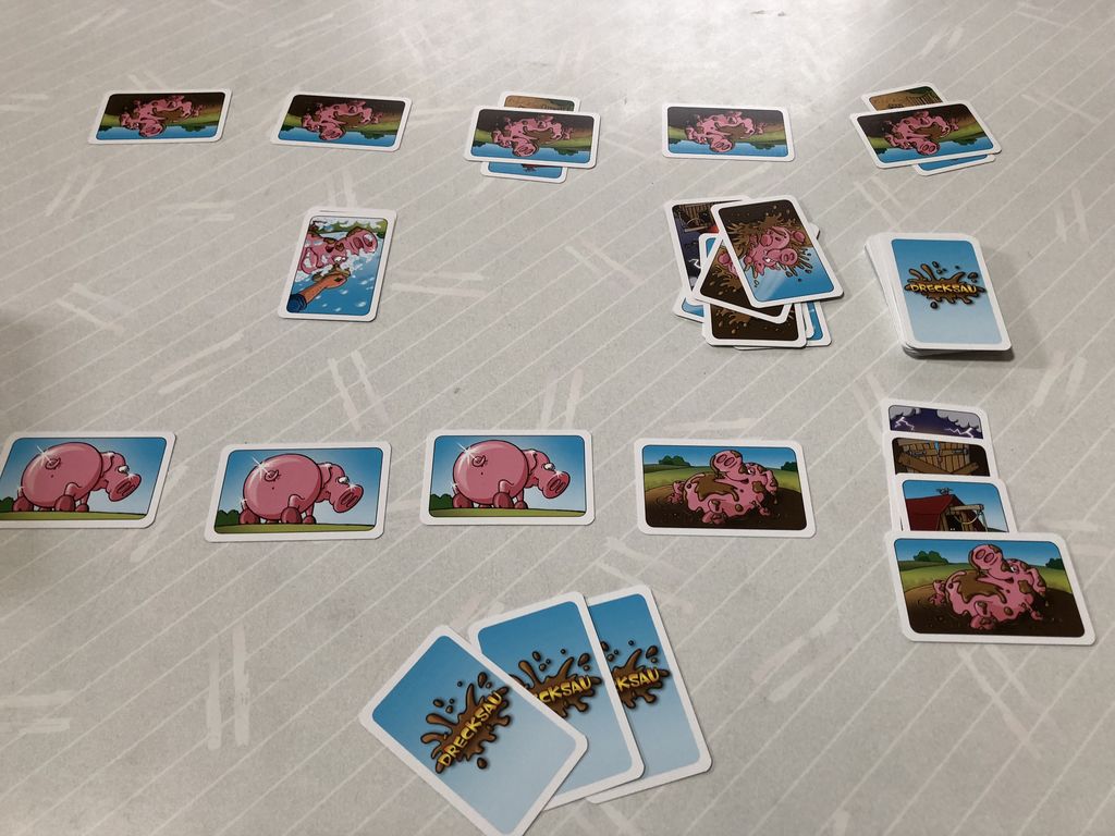 フライングキウィなどもデザインしているフランク・ベベンロスによる、自分手持ちの豚をいかに早く汚すかを競うカードゲームです。