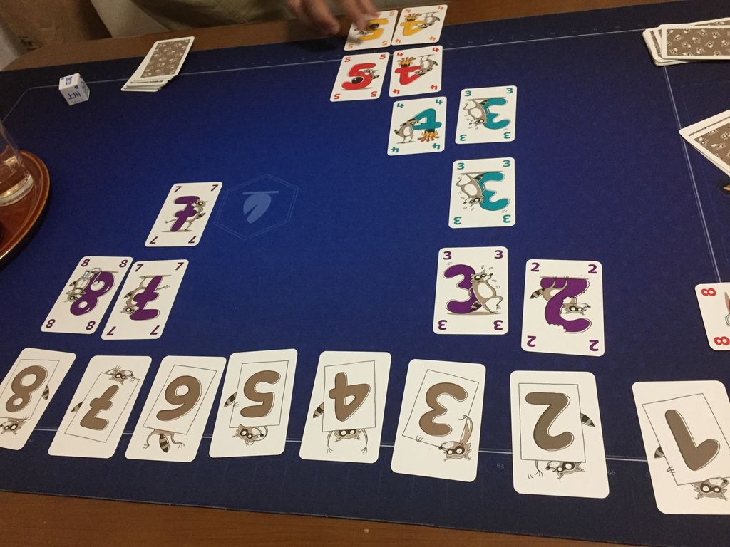 唯一できないのが、違う色のカードが隣接しないことです(縦はOK) このルールが一言で終わる割に結構やっかいです。