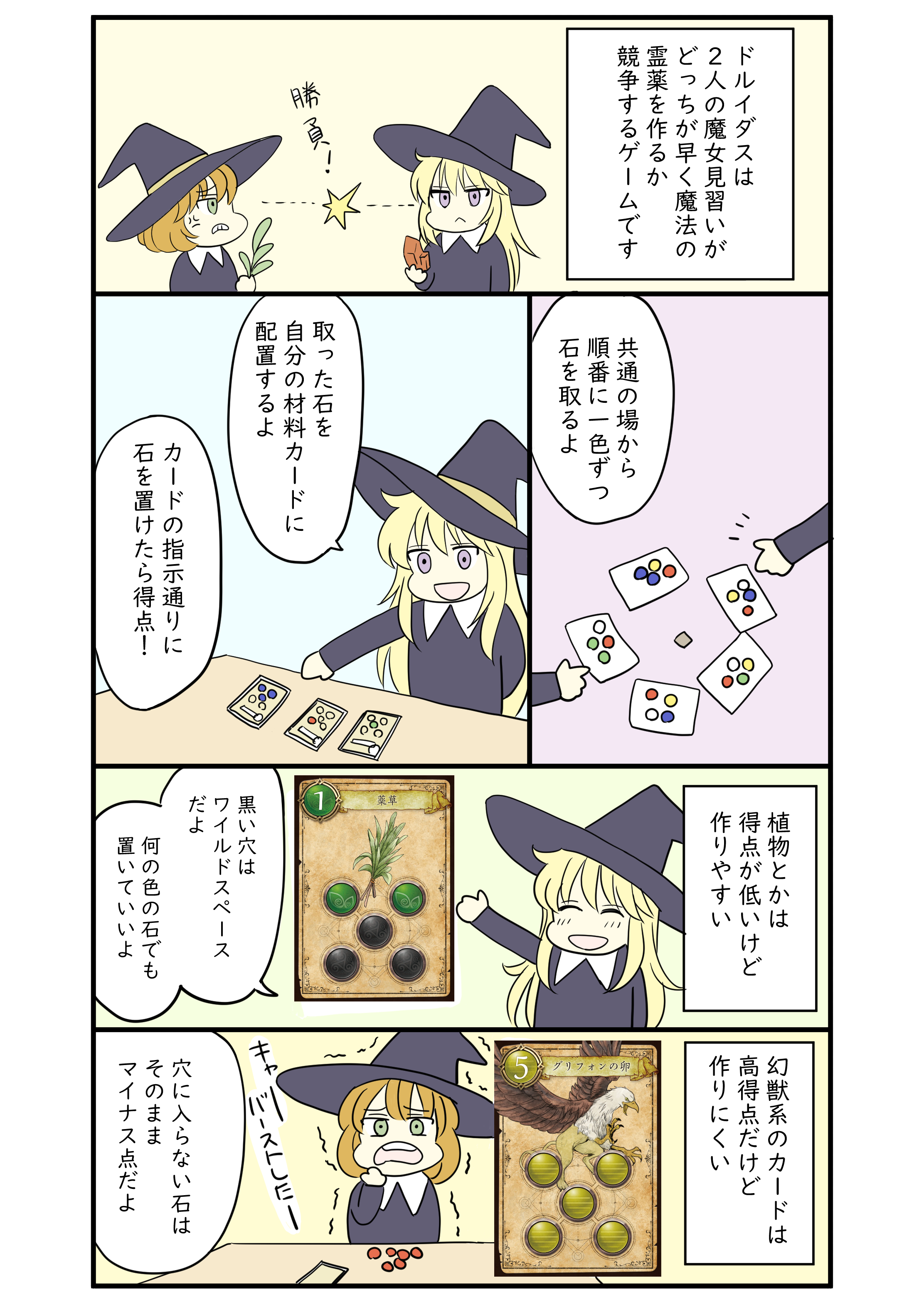 ドルイダス~魔女と宝石の庭~ルールの解説マンガを掲載します。