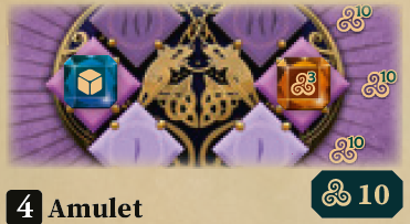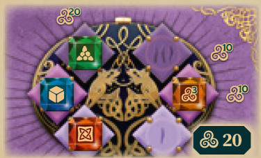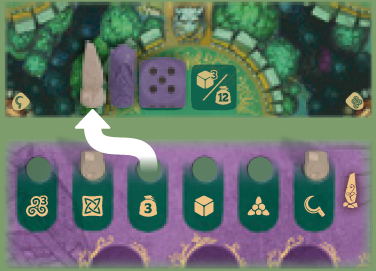 同じ色の2つのドルメン間の隙間のないリンクに必要な祠すべてにあなたのダイスを配置したら、これら2つのドルメンをボードから取り外し、あなたの前に置きます。ゲーム終了時に、それらは石板の得点にとって依然として重要である可能性があります。