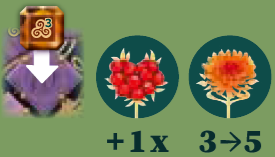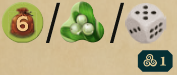 共通サプライから12食料を取るか、概要ボードからあなたのダイスを3つ取り出します。あなたの前の個人サプライに置きますが、ダイスの目は変えることはできません!