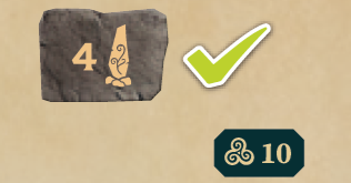ベージュのドルメンは、最初の3つのドルメンのリンクの追加ポイントとして付与されます。 ドルメンのリンクに最初に成功した場合は、概要ボードから対応するベージュのドルメンも取得し、8名声ポイントを獲得します。 2番目のリンクでは、次のドルメンを取り、6名声ポイントを受け取ります。 そして3番目のリンクでは最後のベージュのドルメンを取って4名声ポイントを受け取ります。 |