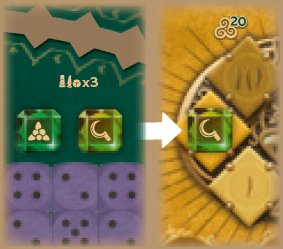 概要ボードにダイスが残っていない場合は、そこからダイスを取るたびに2名声ポイントを受け取ります。