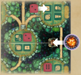 次に、共通サプライから火タイルを取り出し、それで焚き火台を覆います。詳細については、10ページ「火」を参照してください。 |