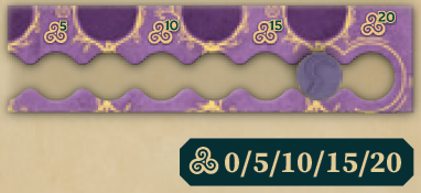 最も高い目を持っているプレイヤーは2名声ポイントを受け取り、それに応じて名声バー上のマーカーを前方に移動します。 |