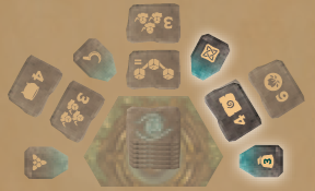 4) 6つのオラクル石を、いま配置した石板の間の6つの隙間に表向きに置きます。