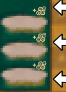 ダイスを置いた後、焚き火台の周囲の2つ、3つ、または4つの祠すべてにあなたのダイスを配置した場合、その焚き火台に描かれている2つ、3つ、または4つのボーナスを受け取ります(8ページ:「ボーナス」を参照)。