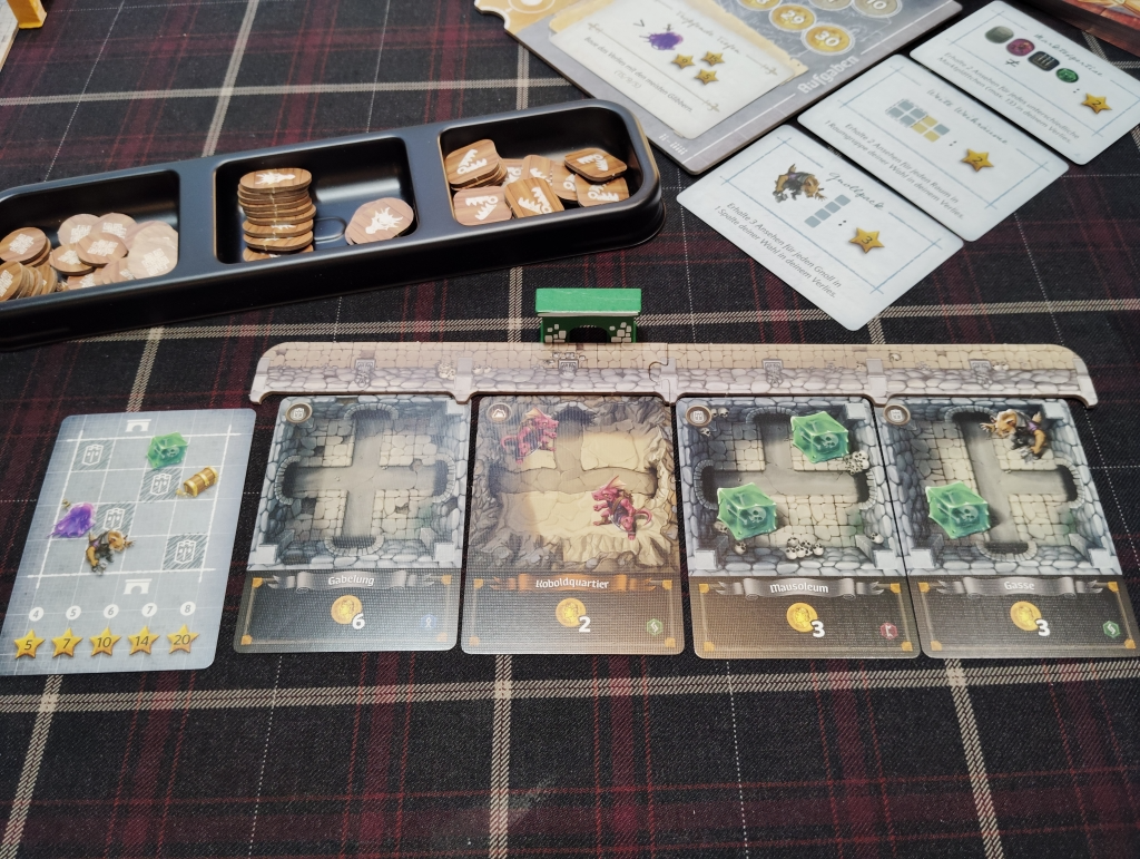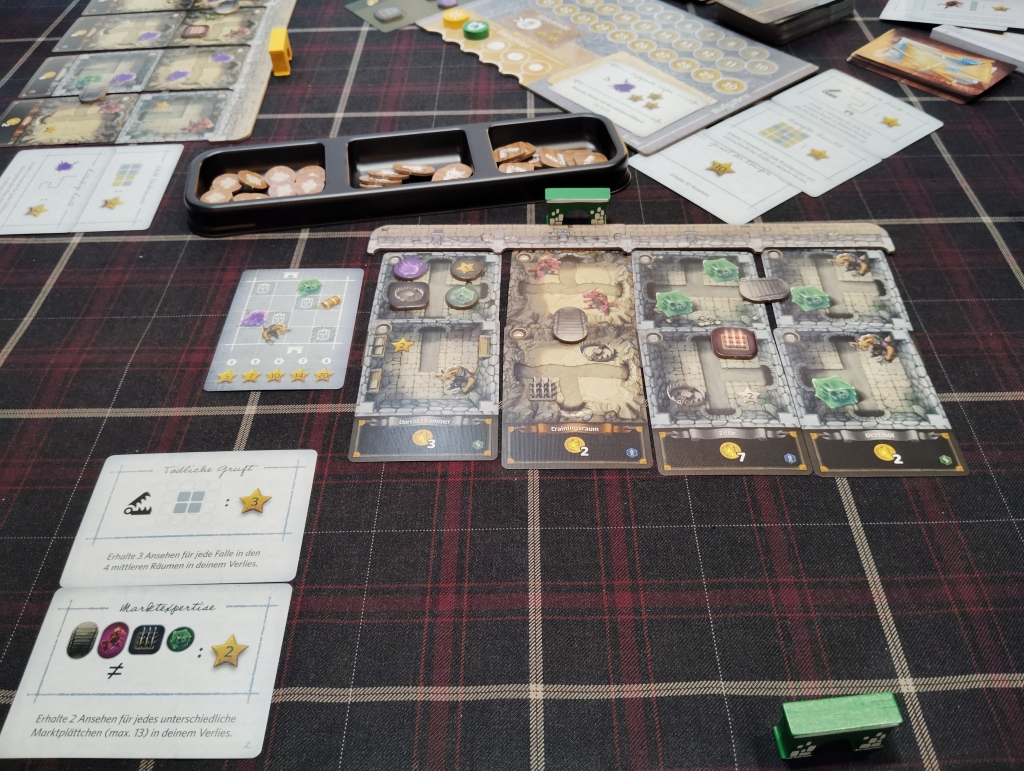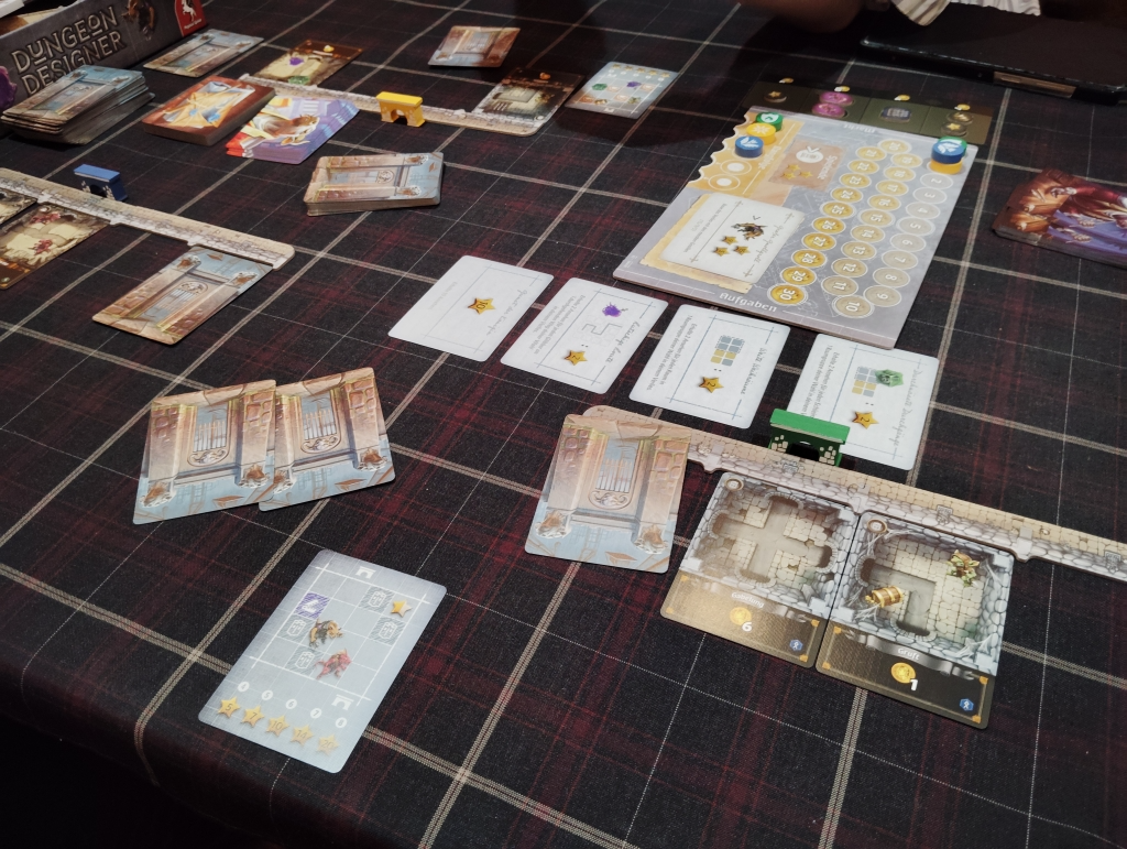 全員が買い物フェイズを終了したら次のラウンドとなり、またカードドラフトでダンジョン作りをしていくのを4ラウンドしたら終了になります。