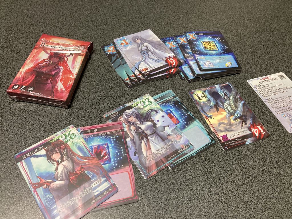 主にプレイヤーとスキル、モンスターカードの追加になっています、物量的に少し割高感あり。全体的に和風テイストなデザインとなっています。追加のボス:ヤマタノオロチが数値だけみると弱そうですが、こちらのダイスがマイナスされる効果があり難敵か。今作追加スキルもあるので、戦力の調整幅がひろがります。