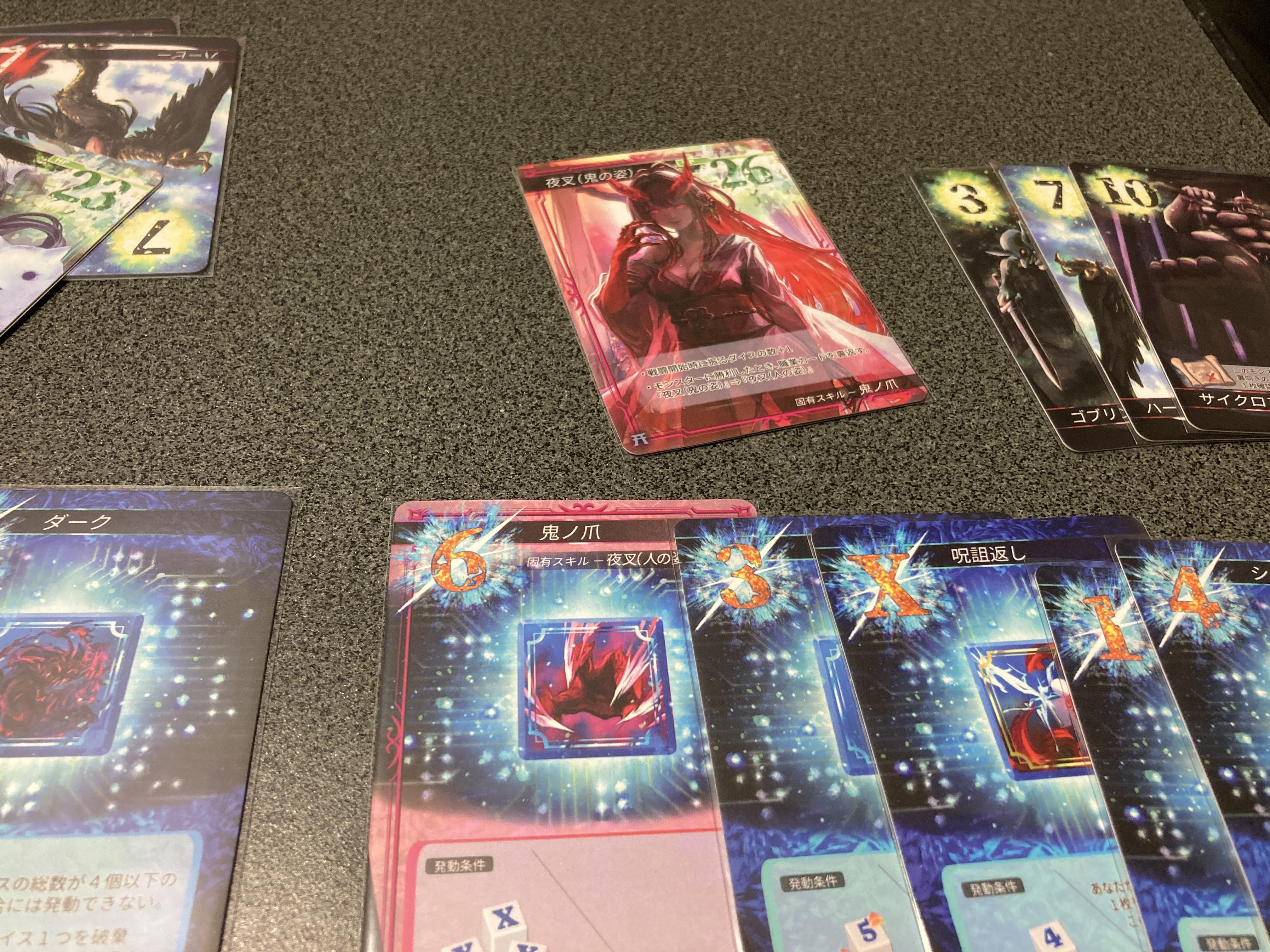 追加職業は2種。陰陽師と夜叉。陰陽師は固有スキルが表裏入れ替えの式神使い。前鬼と後鬼でそれぞれ強いスキルとダイス操る系のテクニカルなスキルで自動で入れ替わる。夜叉はキャラの表裏が入れ替わる2重人格設定。鬼の姿時はダイス追加で強きゃら。モンスター戦に勝利・敗北で自動で入れ替わる。変化がおもしろく導入してみたくなる色がある。カード枚数増えてしまうので、単純に基本に追加でも良いし、スキルやモンスターも同様に追加したぶん抜いて入れ替えても。