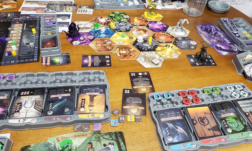 要素がもりもりでインストには時間がかかりますが、タイルや駒、ボスフィギュア等しっかりしていますし、ワイワイできるゲームなので一度楽しんでみてほしいですね。