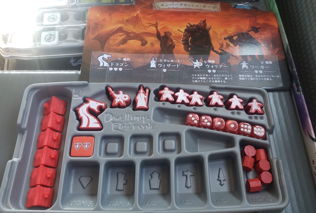配置制限はいくつかありますが基本的にそこまで厳しくはなく、他プレイヤーのワーカーのいるタイルにも条件付きで入れますし、トレジャートークンは随時更新されるのでそこまでやりたいことが被ることはない印象。ドラゴンやウィザード等の特殊ワーカーが闊歩し、部族ごとの特殊能力が発揮されるのはなかなかファンタジーな印象を与えます。