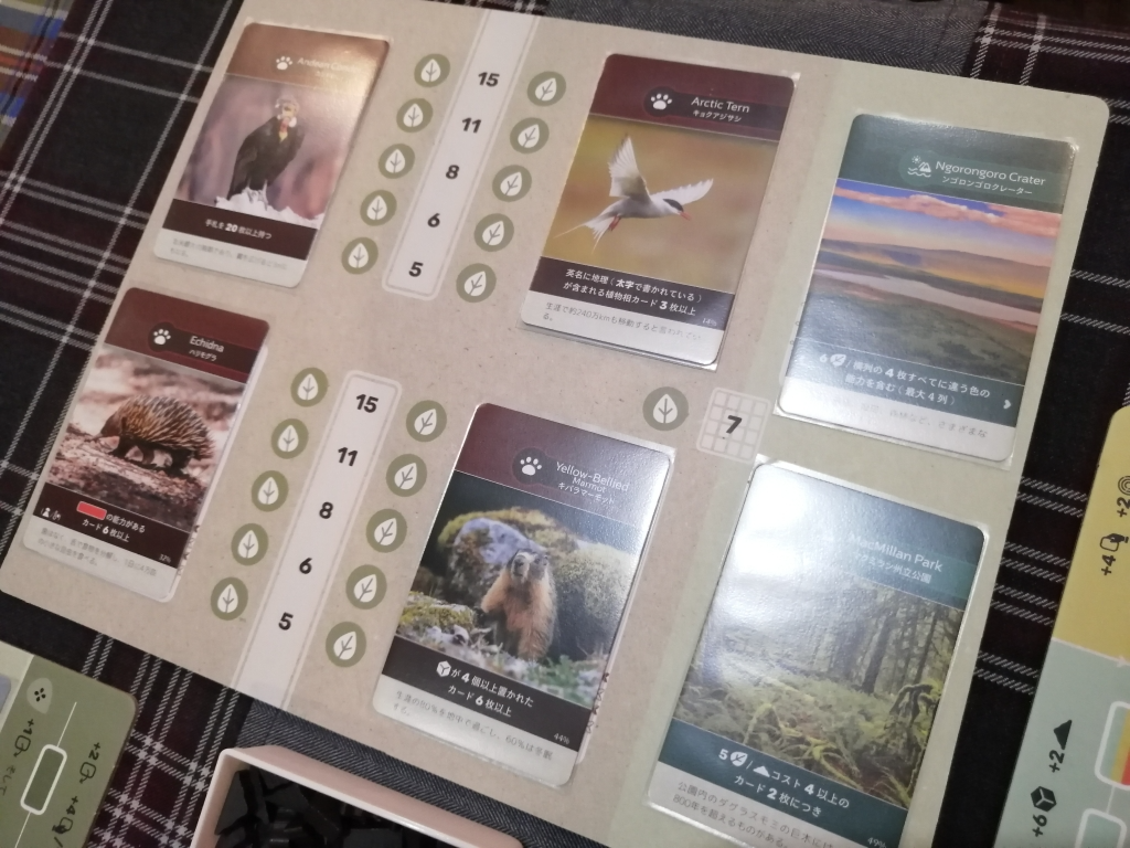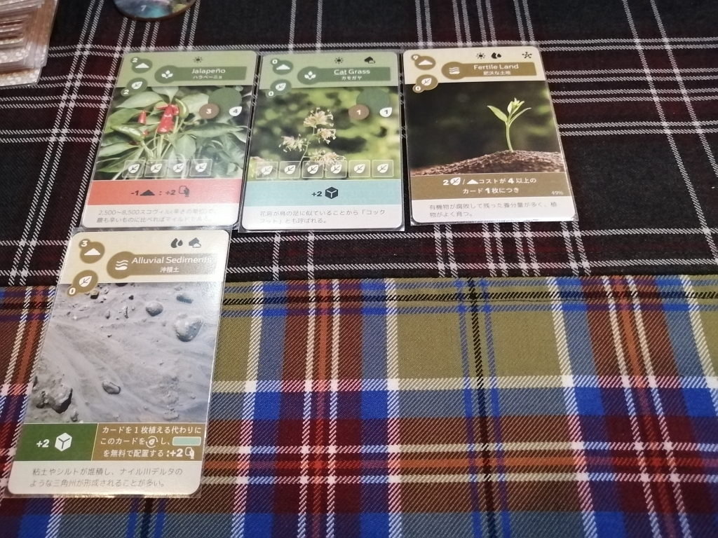 カードの支払いは変な条件がなく、土壌をしっかり集めておけば支払って配置できるかな。だいたいのアクションがほとんど得点行動にはなるけど、カードの噛み合わせ(カードシナジー)と共通目標とは意識しておかないと意外に得点は伸びなかったりする。