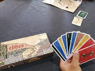決める数字のカードが手札にあれば、わりと攻めやすいかもやけど無いなら持ってそうなプレイヤーが出したくない、出さざるおえないようにする必要があるかな。エッベス色になったカードは、エッベス色の獲得枚数が最多と最少のプレイヤーは0点獲得で、他プレイヤーは3点獲得になります。