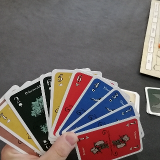 プラスとマイナス色は1枚1点にと得点方法やルールにと分かりやすい。切り札色から決めていくから、その色がのちのちにいいのか悪いのかは後半になるほどに分かってきてよい。