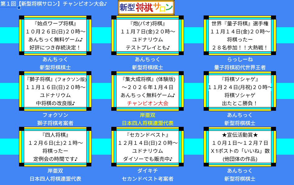 第1回【新型将棋サロン】チャンピオン大会の結果は
