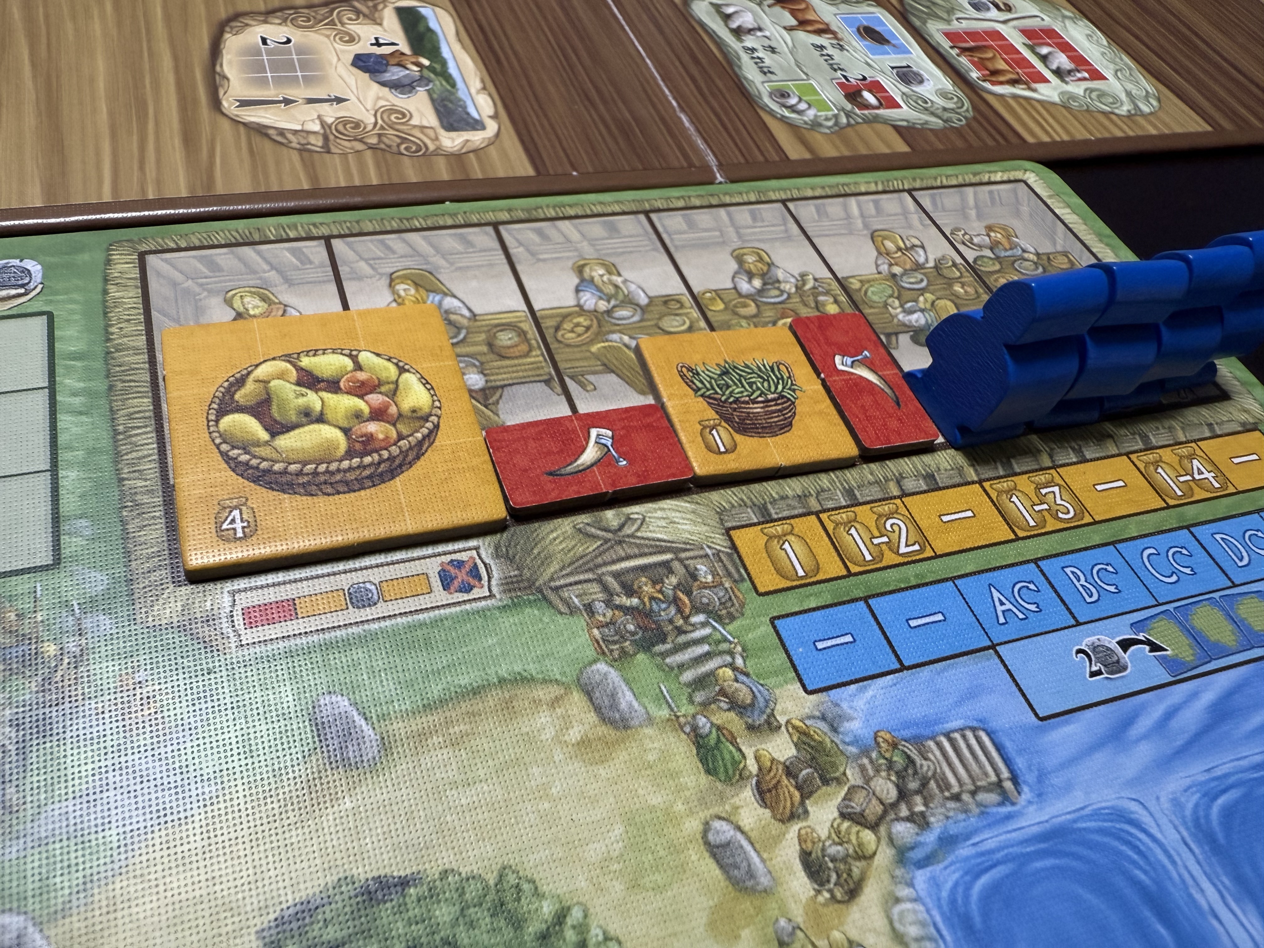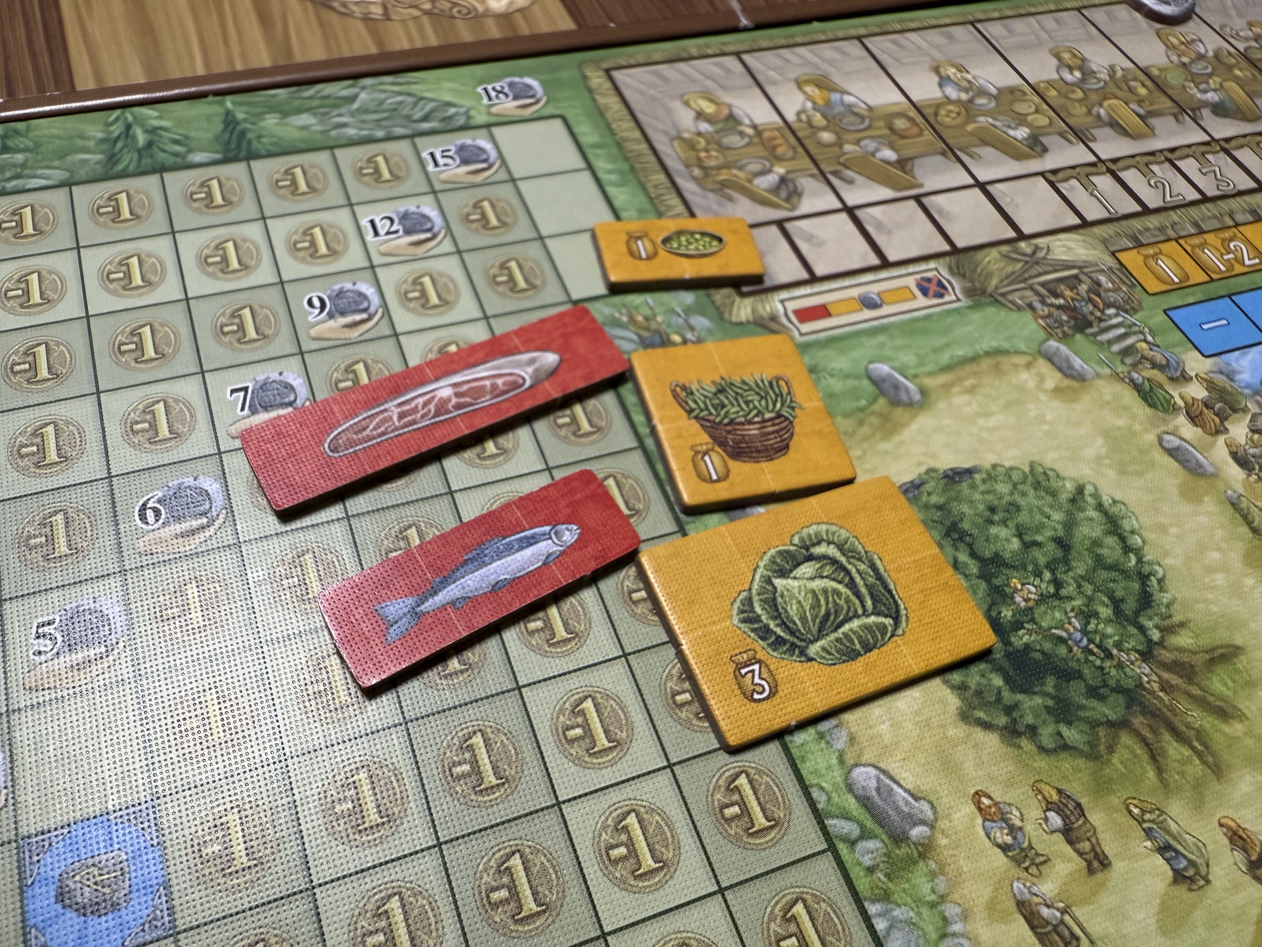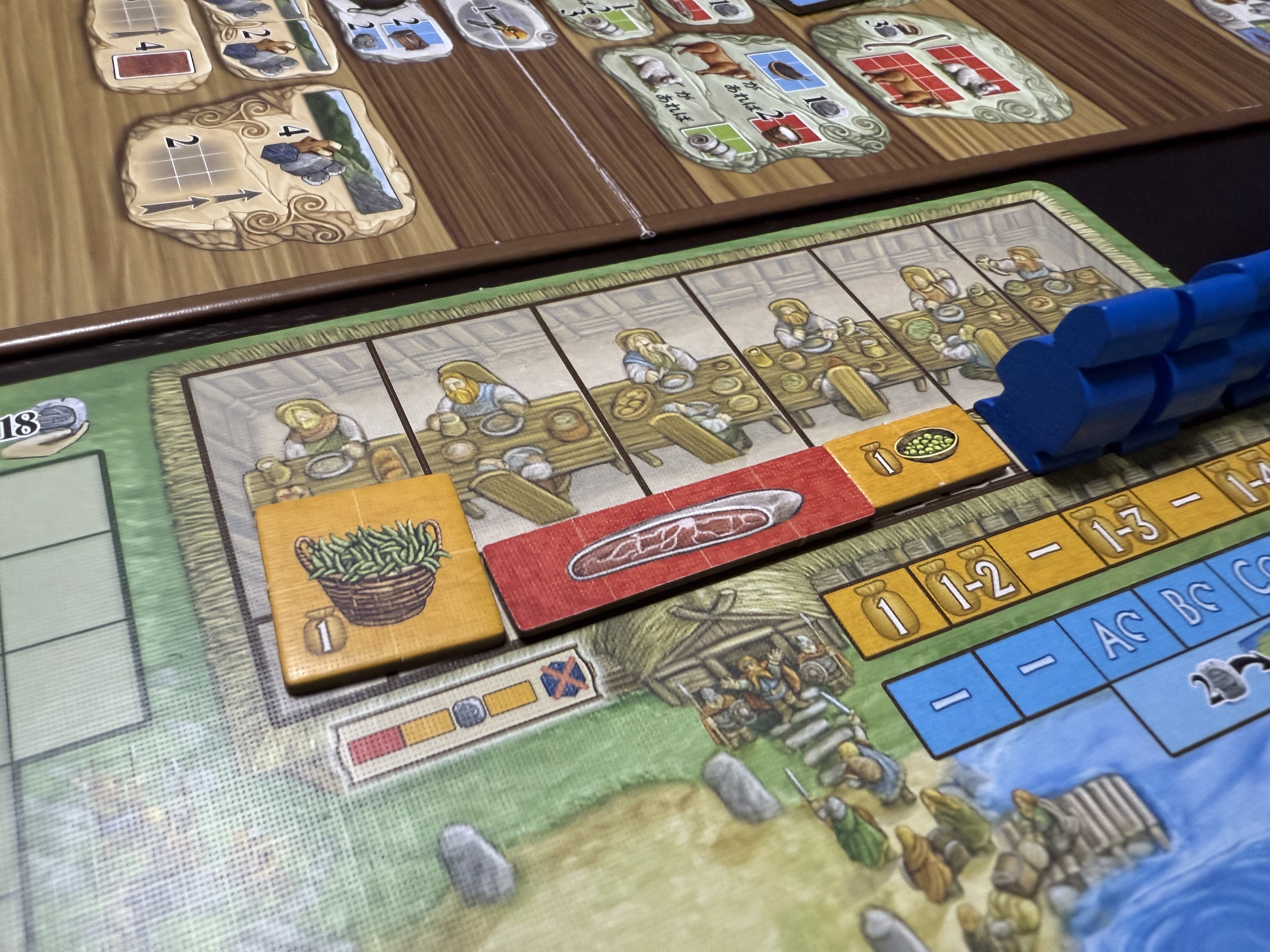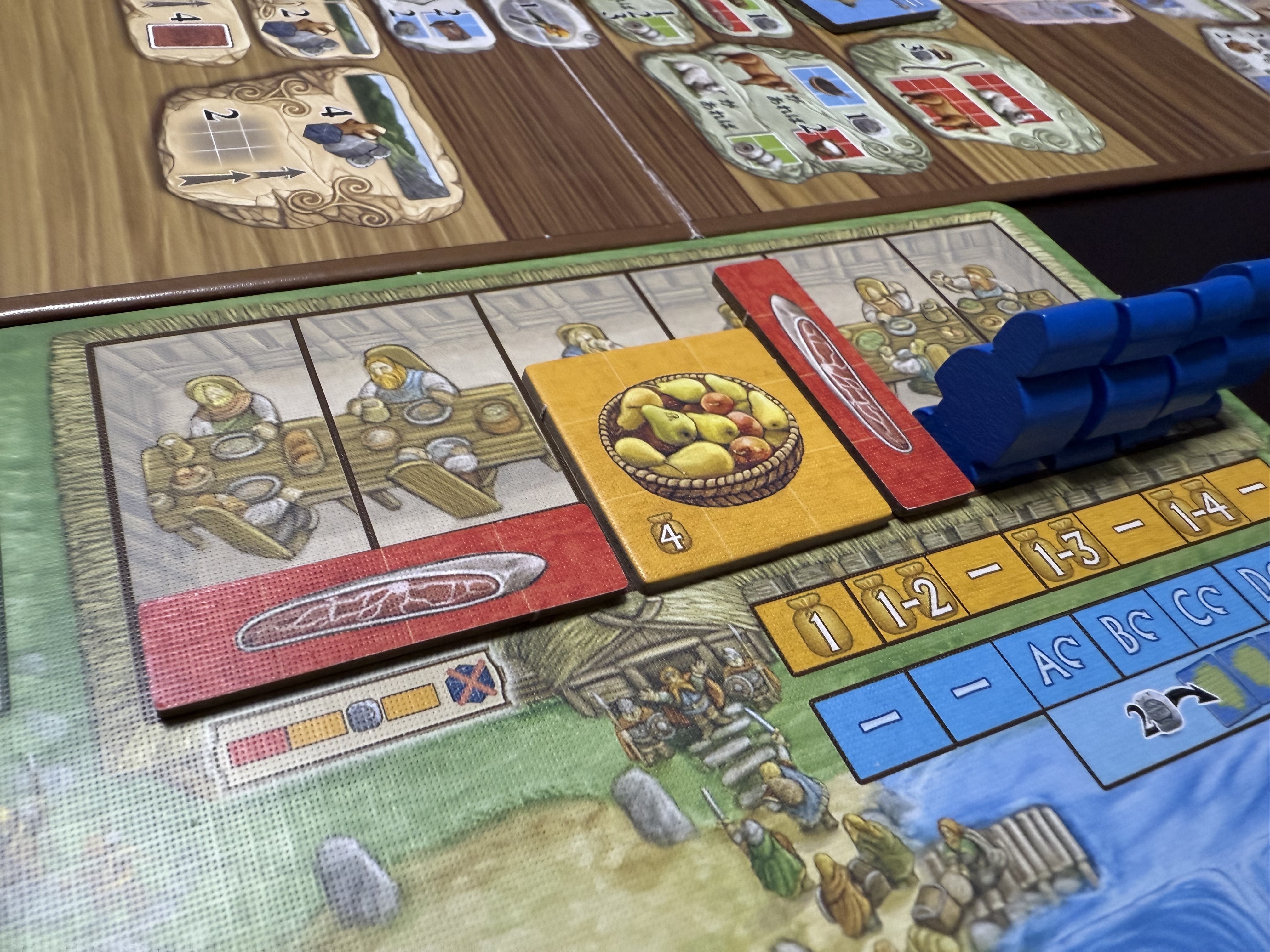 何より、饗宴が発生するたびあたかも「何を食べよか」とテーブルに食糧タイルを並べていく時間はとても楽しいですし、見た目にも華やかです。かろうじて作ることができたパンで食いつなぎ、直接点数が下がる原因になる家畜の肉をうんうん悩みながら食べるアグリコラの食事とは趣も方向性も違います。