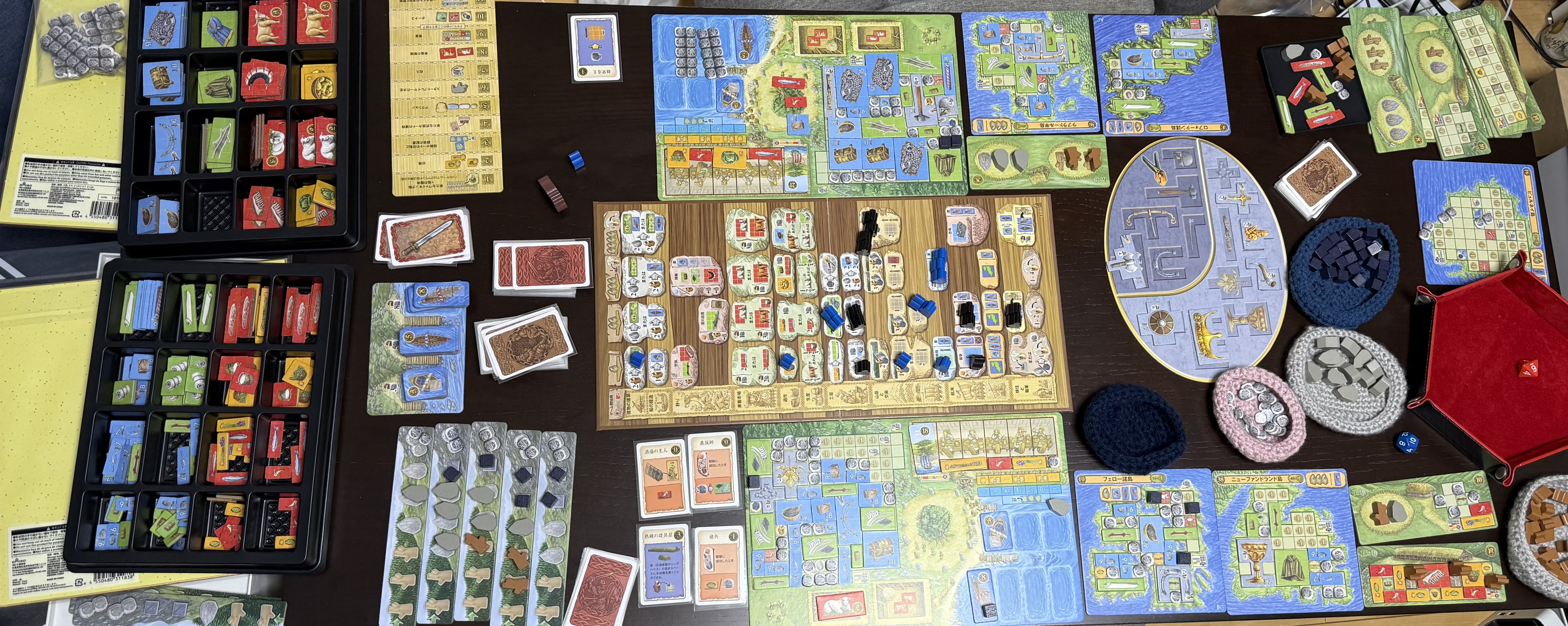 タイル配置というギミックはボードゲームにおいてそう特別なものではないように思いますが、ゲームを通じて収集される各種リソースそれ自体に二次元的な大きさがあり、その組み合わせの妙によって「複数の評価軸による悩ましさ」が生まれるのは、とても革新的なことのように思います。