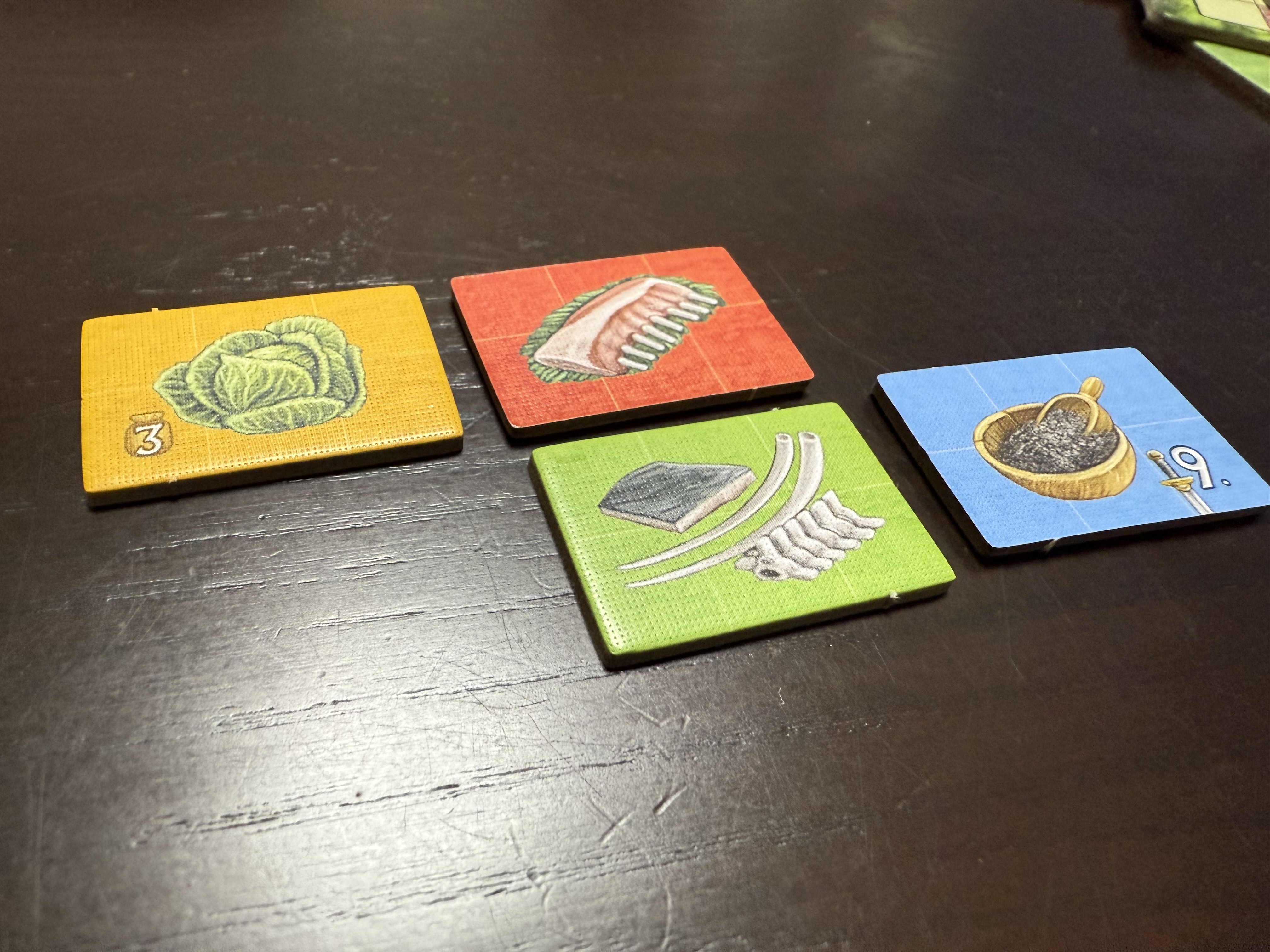(実を言うと本作でいうお金も1×1の資源という扱いなので食卓に並べられたりしますが、ここでは割愛させていただきます)