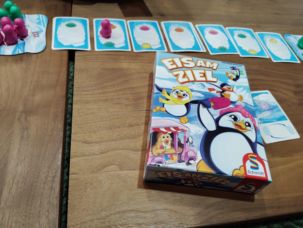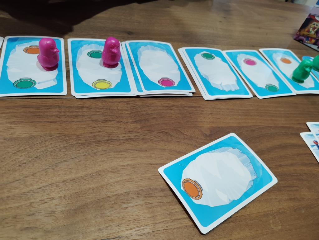 特殊カードもあり、水没させたりカードを入れ替えたりもできてアイスクリーム屋にペンギンたちが先に5匹到着したら勝ち。