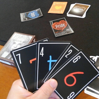 プラスカードもあるけど、都合良く山札からめくられる訳でなく罪を重ねていく。罪を押し付けることもできるカードもあり、罪は軽くなるんだよ(。-∀-)ニヤリ