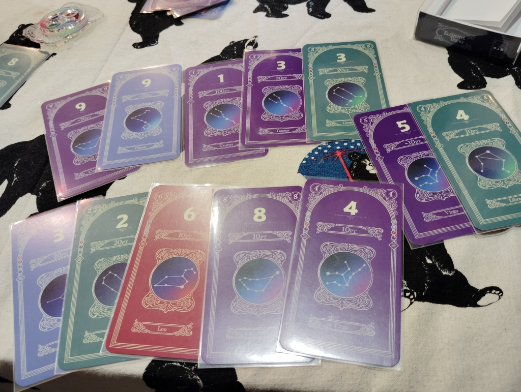 4色1〜9の数字カードがあり、数字ごとに獲得したらプラスになったりマイナスになったりします。