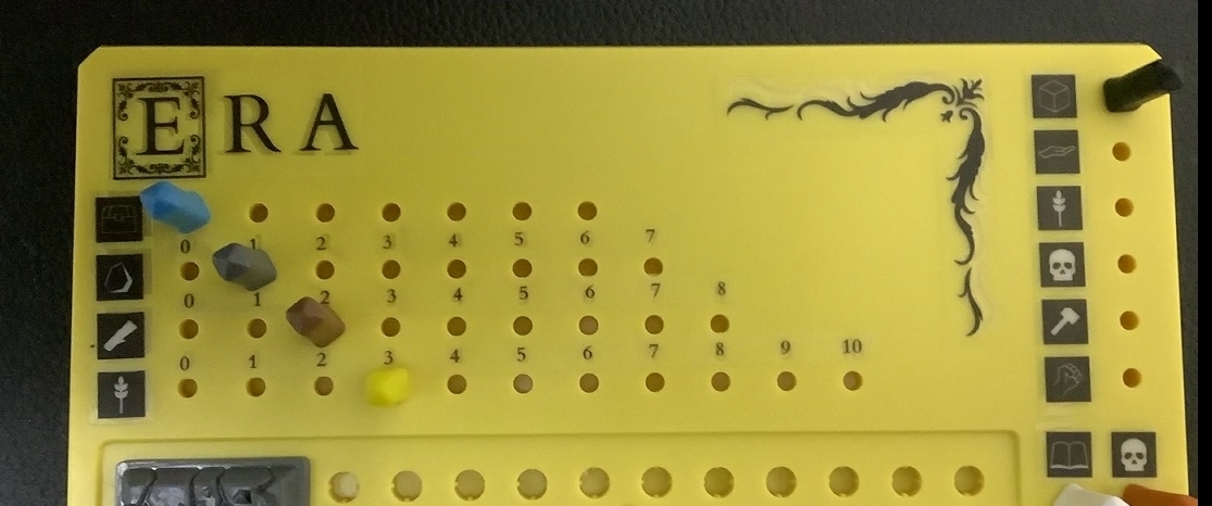 資源の表記は個人ボードの上にあるペグを刺すことで個数を示しており、結構すっきりしたものとなっています。