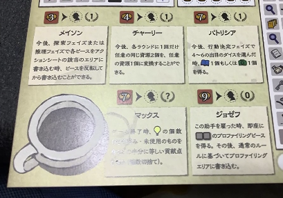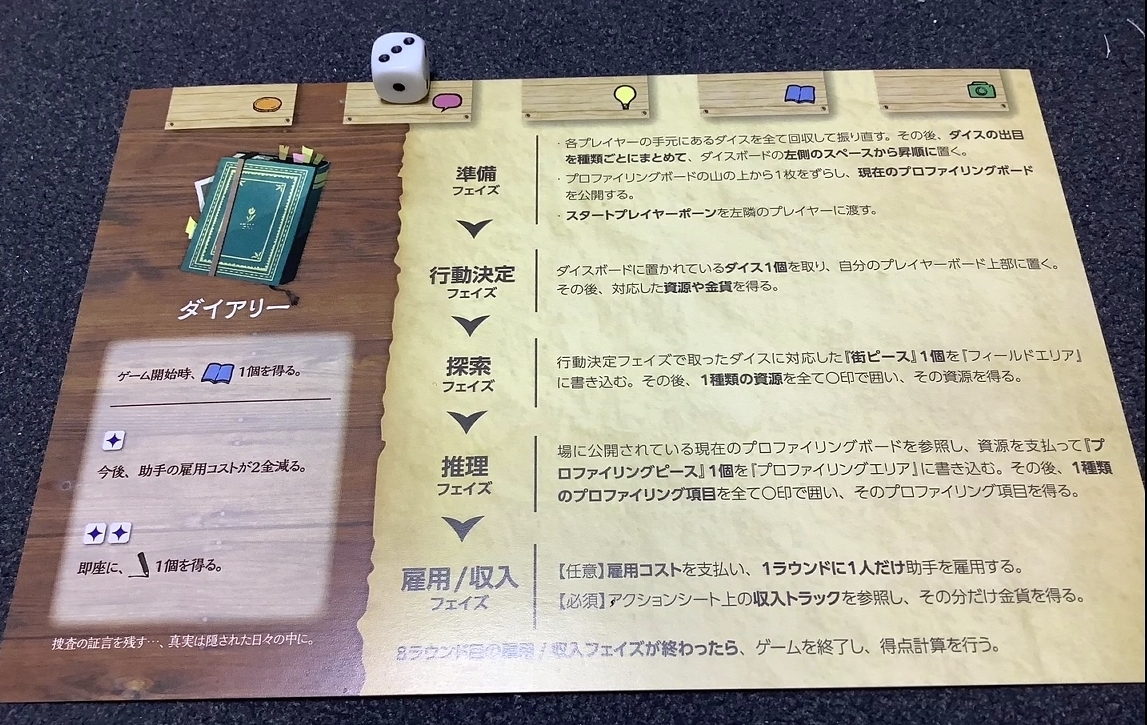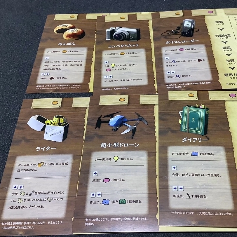 一見紙ペンゲームの工程に見えるんですが、聞き込みをして手がかりを入手してプロファイリングの過程を行い、手が足りなかったら助手を雇うという、探偵の捜査を表現しているんです。