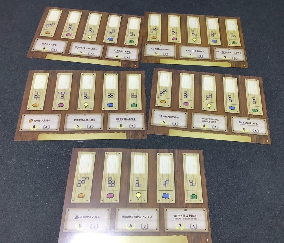 まず個人ボードを選びます6種類それぞれ能力が異なります。右半分はサマリーですからメインはこの初期アイテムだと思ってください。