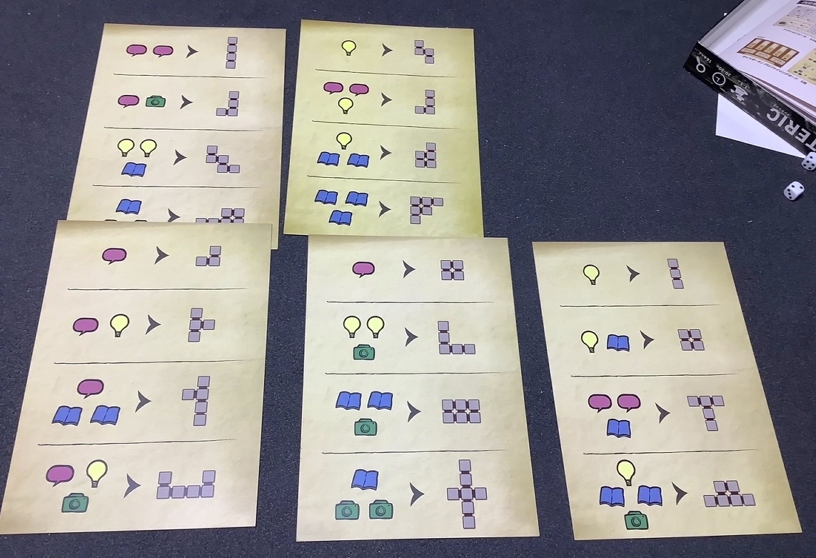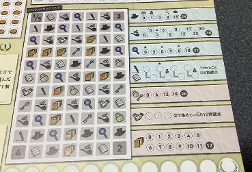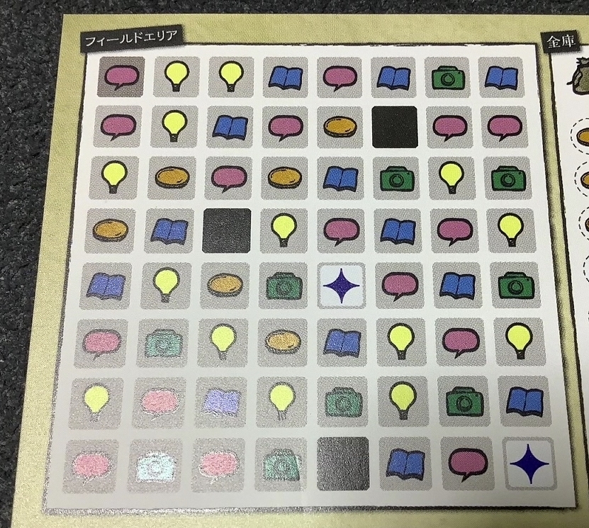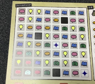 そしてゲームボードのところに書いてあったピースの形にこちらのフィールドエリアと呼ばれる場所に囲みます。そこから1種類のアイコンを手に入れ書斎に記録します。(同じアイテムが2個以上囲めるなら2個以上手に入ります)