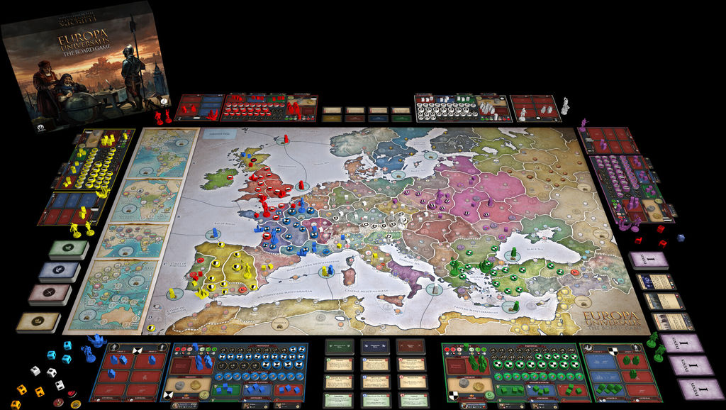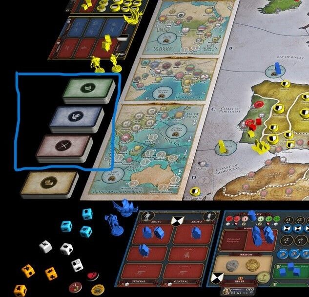 一般供給(I)と呼ばれるデュカット(キューブ)コイン、反乱都市(キューブ)、傭兵部隊などを含むリソーストレイは、ボードの隣に置きます。
