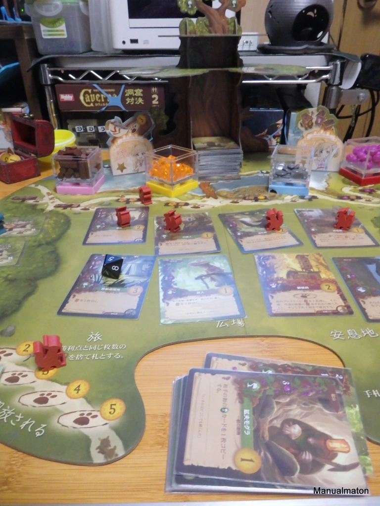 それだけでなく、プレイヤーがカードをプレイすると広場からランダムにカードを取り、ラウンド終了時にはセットコレクションの条件を満たしていたら問答無用でかっさらっていくので、軽率なプレイができにくくなっていました。