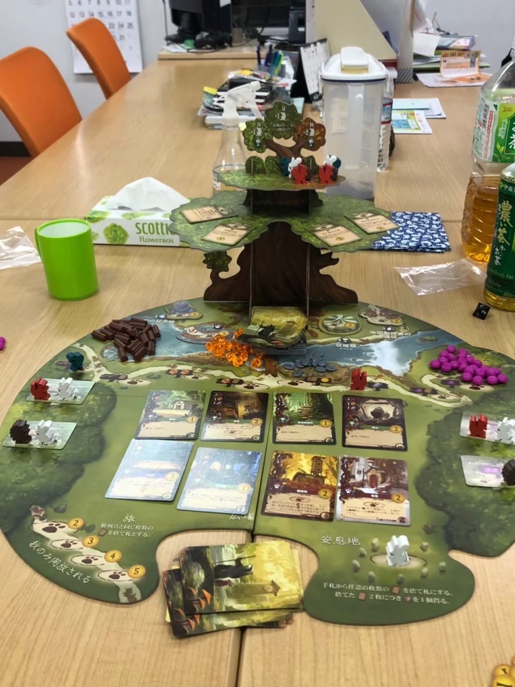 「森の動物たちと一緒に町を作ろう!」大きな木をはじめ、美しいモジュールに囲まれながら動物たちが町づくりをするワーカープレイスメントゲーム。所要時間が1時間以上かかる重ゲーだがルールはさほど難しくない。インスタ映え間違えなしの面白いゲーム。