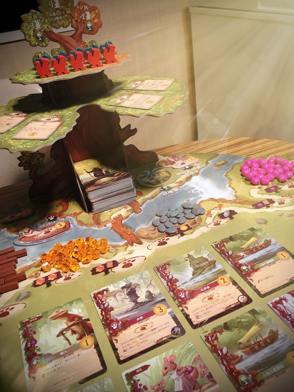 この作品、持ってるボードゲーム、やったことあるボードゲームの中でもトップクラスに好きなゲームです!何故ならゲームの世界観がまさにエバーデールでありコンポーネントも豪華で可愛くてカードやエバーツリーも含めて全てに夢があります。初めて中量級のボードゲームをやる人ならボドゲ沼に引き込まれること間違いなし!ゲーム内容もやれる事がシンプル明確で分かりやすいワカプレ+やわらかなカード効果のドミニオンみたいな、一回プレイしただけでもすぐに馴染めて楽しめる内容で、やり込み要素もあります。お初の方とのプレイや相手に女性がいる場合!笑、または大人数の時にはエバーツリーを組み立てた方が100倍ゲームは盛り上がるのですが、組み立てる度に紙パーツの接合部分へのダメージが気になるので、今は無理して組み立ててないです。笑。超人気作品でずっと枯渇していたエバーデールですが、いよいよ近日中に再販しますね!合わせて新発売する「エバーデール拡張 真珠の入り江 完全日本語版」も一緒に手に入れてこの機会にプレイしてみてはいかがでしょうか!間違いなく今を代表するボードゲームの一つだと思います。