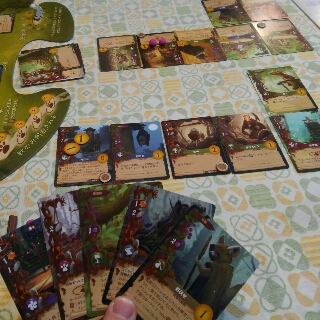 ワーカープレイスメント&カードプレイをして資材調達、建物建設に動物を呼んだりりします。