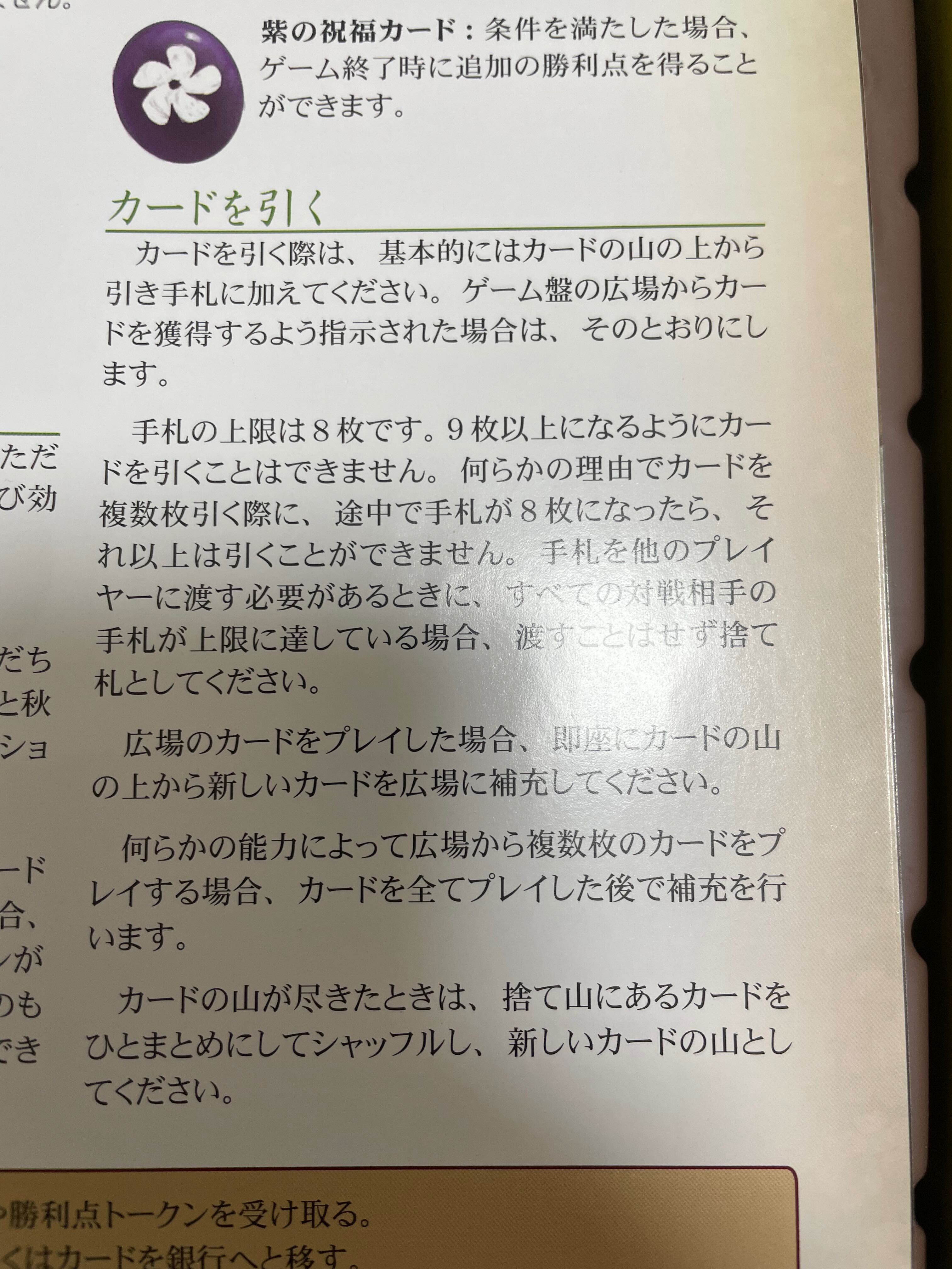 エバーデール完全日本語版(第3刷)のルールブックP11に記載のカードを引くの項目中広場へのカードの補充タイミングについて