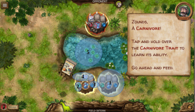 ラウンドの流れは、①カードドロー(3+コントロールする種族数)、②場の餌量決定の為のカード選択、③カードプレイ、④食糧供給、となります。