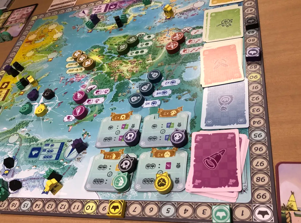 ナヴォリアの開拓者たちは、中量級として丁度いいボドゲです。ボードゲームの様々な要素がうまく噛み合い、シンプルなアクションのみでいい意味で悩ましく遊べます。どの得点方法を選ぶのか、特化させるのか分散させるのか、袋から出すランダム要素に手番順の影響などいろいろと試したくなってきます。ボードゲームに慣れてきて中量級で遊んでみたいという時にぜひおすすめしたいボードゲームです。