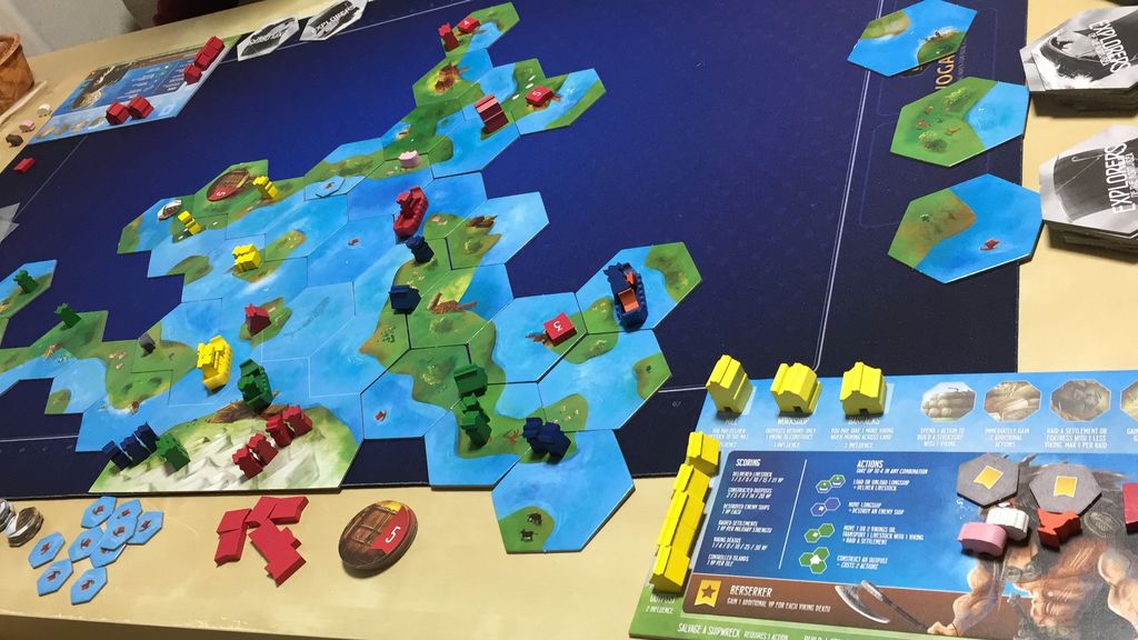 バイキングとなって島々を冒険する(時には襲う)手番型アクションポイントのゲームです。今回は拡張入りで遊びましたが、タイルがかなり増えて、手番が倍弱になっているんですが、思った以上にテンポよく遊べます。