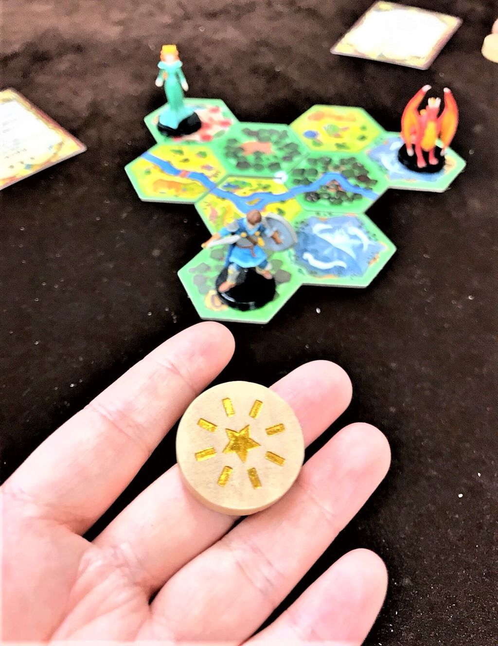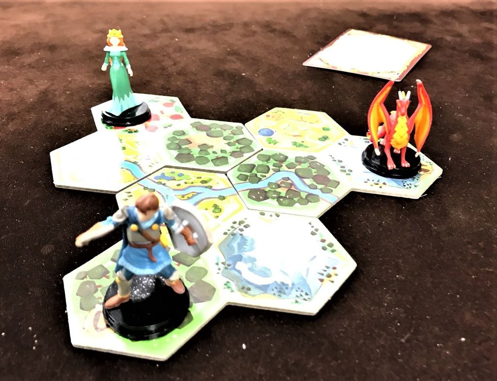 やることは、どれか1体を移動させて、手札の位置に関する条件を達成させる、の繰り返しです。姫とドラゴンが同じマスにいる、とかそういう。